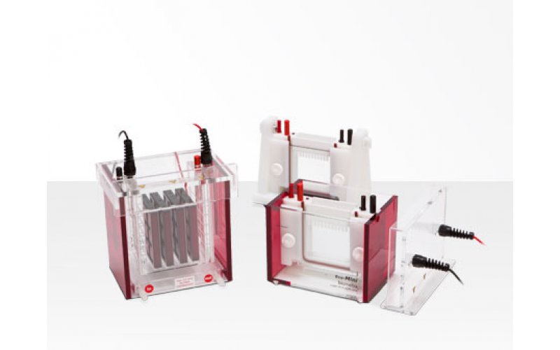 Eco-Mini System EBC, é um sistema completo para 2 géis (dimensões 9.4 cm x 8.0 cm) , equipado com 1 câmara tampão (com base de refrigeração integrada), 1 Tampa de segurança Bigfoot, 1 Módulo de eletroforese, 2 placas de vidro com espaçadores fixos de 1,0 mm, 2 placas de vidro entalhadas, 1 placa manequim, 2 pentes (1,0 Mm, 10 poços) e 1 suporte de fundição.O Blot Module para Eco-Mini está disponível separadamente e tem como função converter este aparelho de eletroforese num poderoso western-blot.