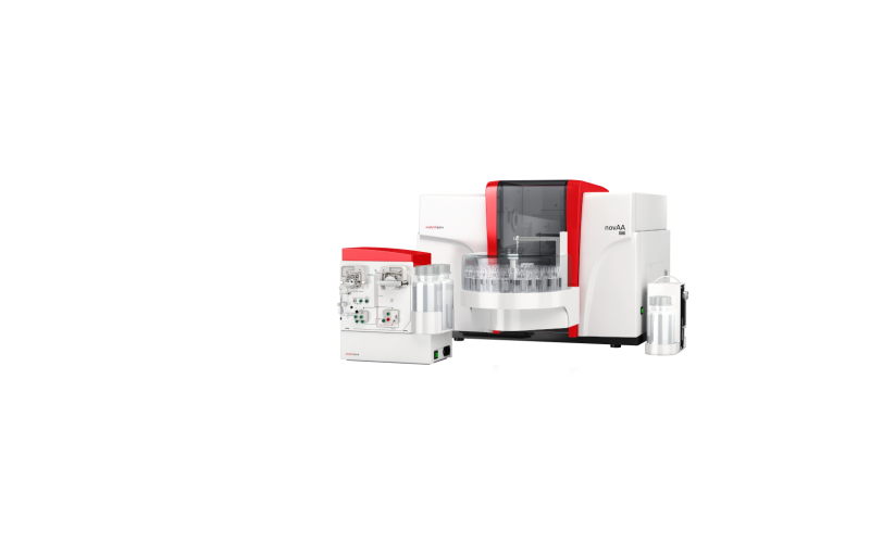 | novAA 800 F - Chama AAS | 0.2, 0.3, 0.5, 0.8, 1.2 nm | Chama: 0.017 mg/L 1 %Abs (Cu 324) | Lâmpadas Catódicas Ocas (HCL) | 185-900 nm | Espetrómetro Czerny Turner | SiOSens | Deutério | 1500 mm x 620 mm x 460 mm | 2000 mm x 700 mm x 550 mm |